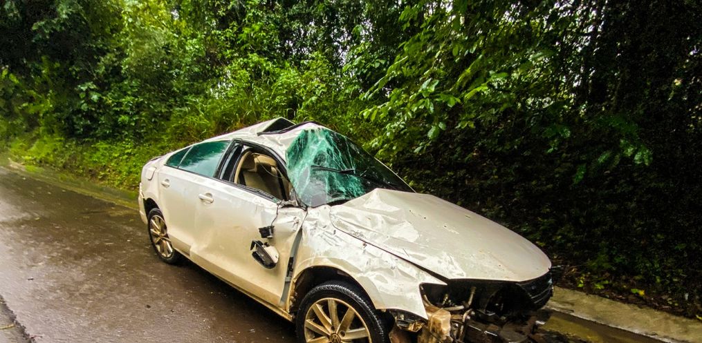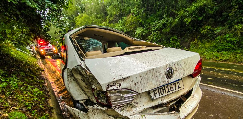 Segundo apurado, o condutor de um Jetta com placas de SMO, seguia sentido Maravilha quando saiu da pista, colidiu no barranco e capotou.