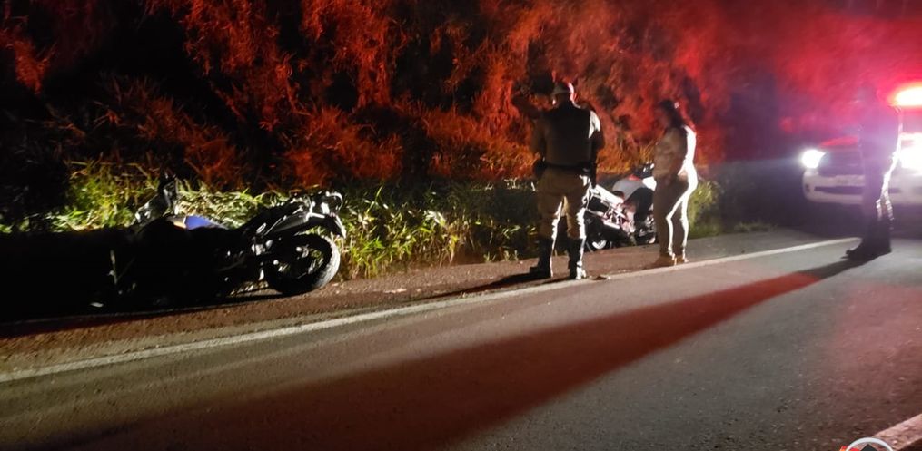 Uma colisão traseira deixou um motociclista levemente ferido na noite deste sábado, 27, na SC 163, KM 74, no Distrito de Itajubá - Descanso.