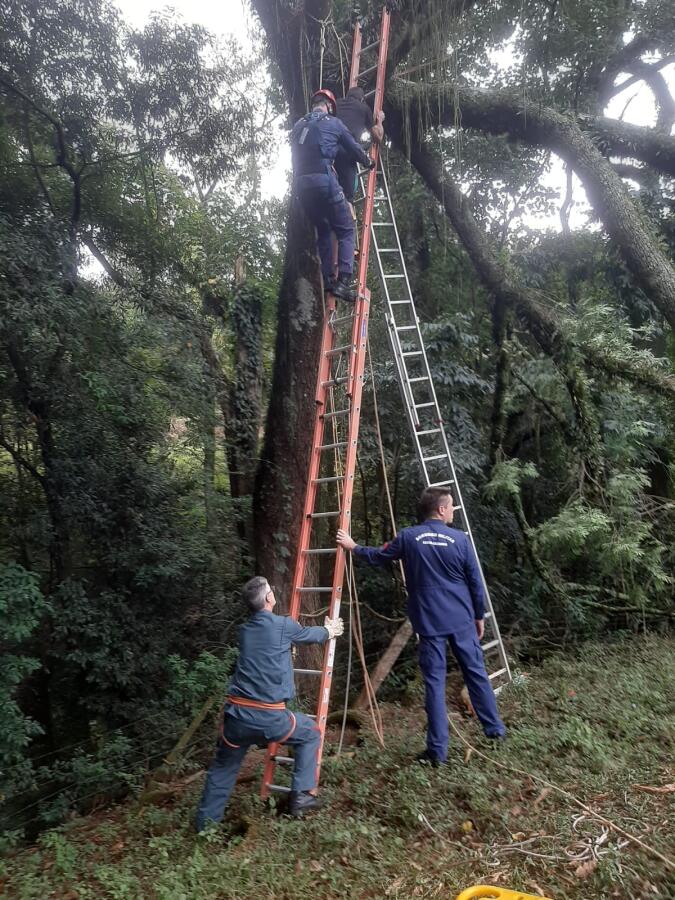 Um homem foi resgatado após ficar preso em uma árvore na tarde deste domingo, 26, por volta das 13h50, na Linha São Jacó, interior de São José do Cedro.