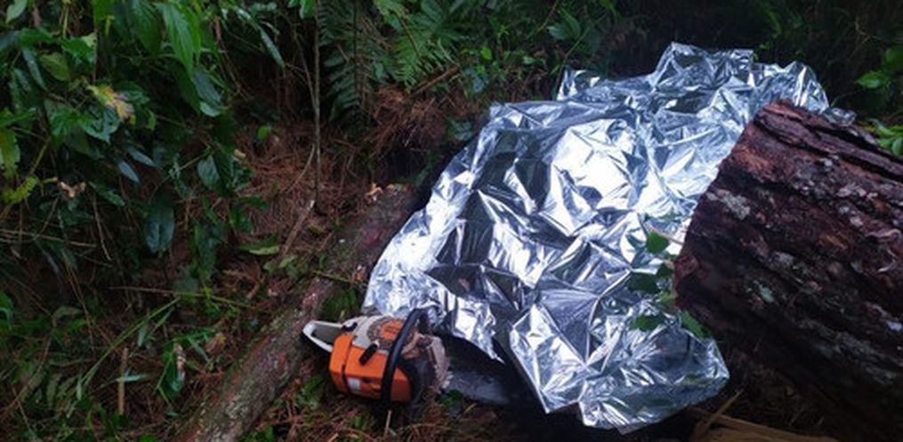 Em conversa com um colega de trabalho, que estava no local, os bombeiros foram informados que ele encontrou a vítima caída e com a motosserra ligada ao solo.