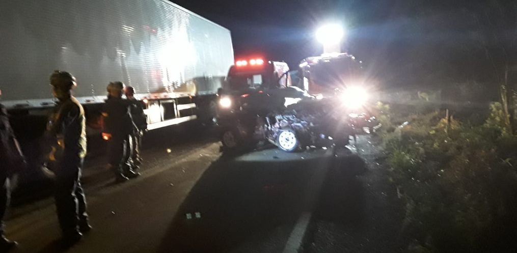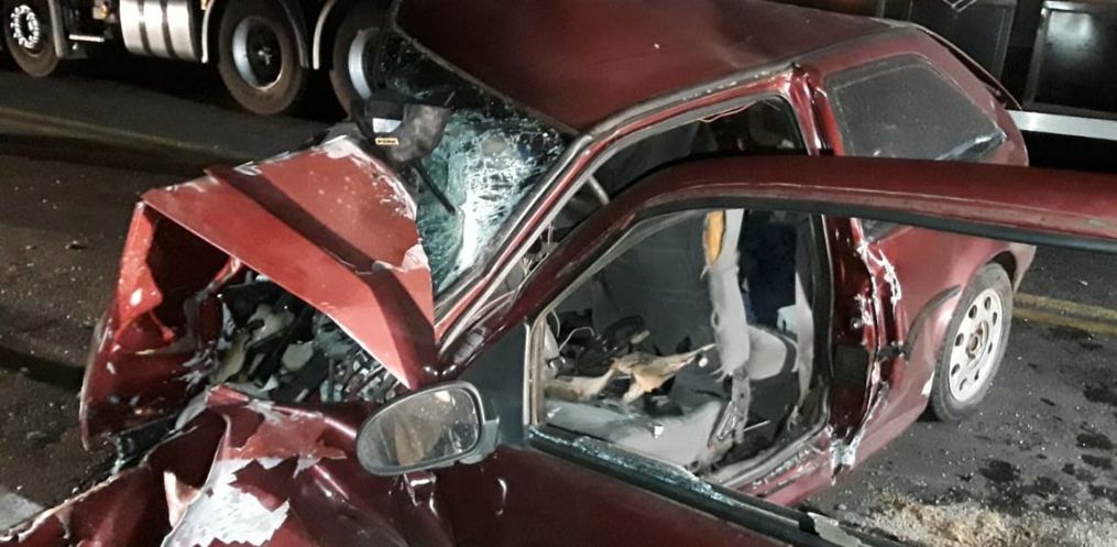 No local, o Corpo de Bombeiros atendeu uma colisão frontal envolvendo o veículo VW Gol CL 1.6 de Videira conduzido por um homem de 26 anos e um caminhão Scania R450 de Marmeleiro conduzido por um homem de 42 anos.