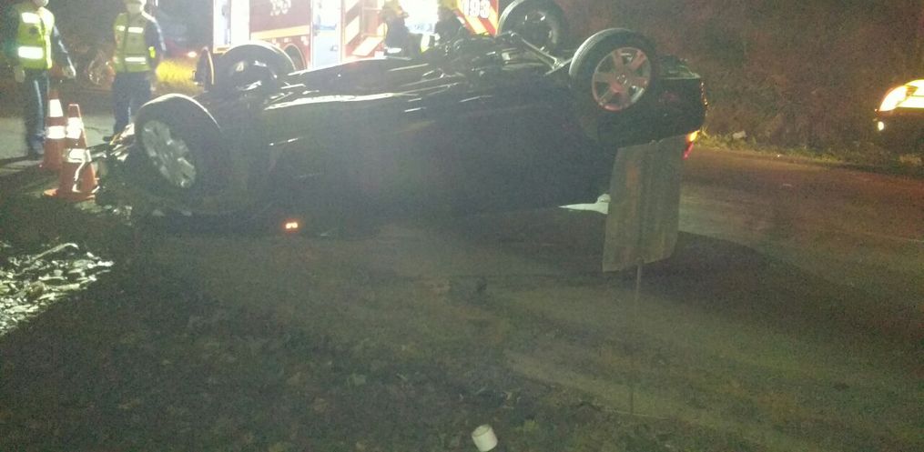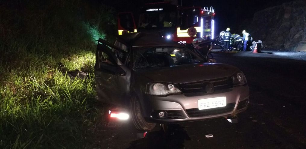 O Corpo de Bombeiros informou que foi uma colisão traseira. Um dos veículos capotou com o impacto da batida.