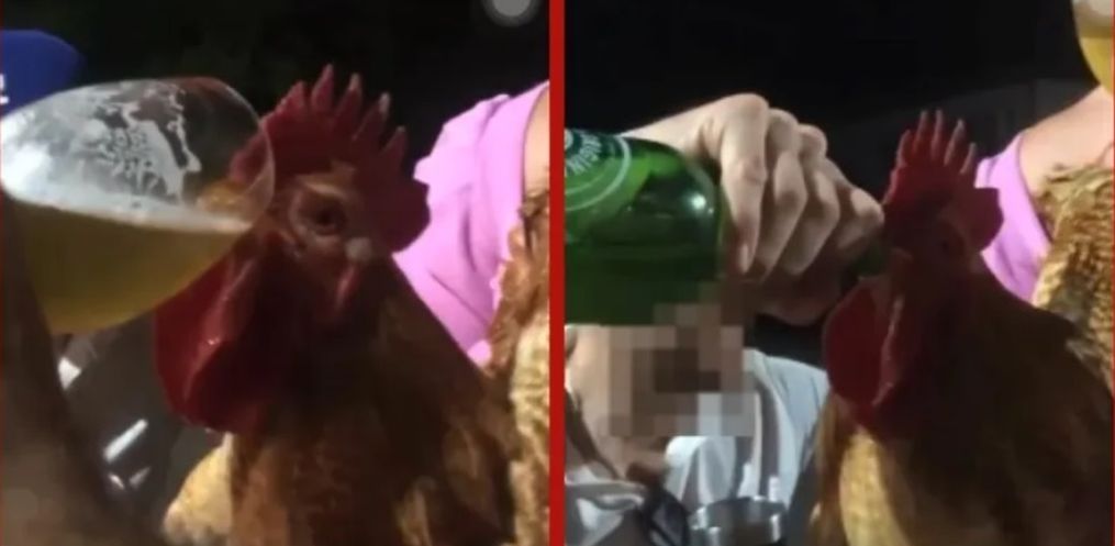 As imagens circularam nas redes sociais e chegaram ao conhecimento da polícia. Nas imagens, é possível ver um dos homens dando cerveja ao galo em uma taça. O outro coloca uma garrafa no bico da ave.