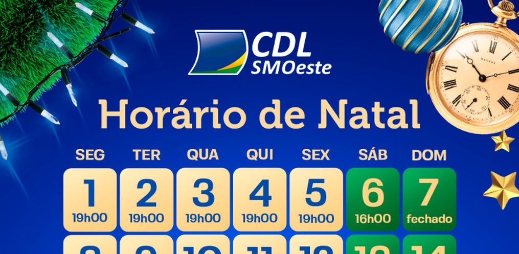 O calendário divulgado pela CDL de São Miguel do Oeste prevê ainda que na véspera de Natal o atendimento do comércio seja até as 16h, retomando as atividades apenas no dia 26 na parte da tarde. Já no sábado, dia 27, a sugestão é de atendimento normal até ao meio-dia. Já nos dias 29 e 30, o comércio deve atender no horário normal e no último dia de 2025 manter as portas abertas até às 12h, retornando no dia dois de janeiro na parte da tarde. Já do dia três em diante, o horário volta totalmente ao normal nas lojas de São Miguel do Oeste.