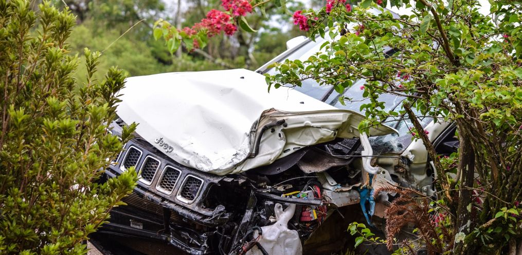 A colisão frontal foi entre o Gol que era conduzido pelo jovem, com placas de Tunápolis, e um Jeep/Compass com placas de São Miguel do Oeste.