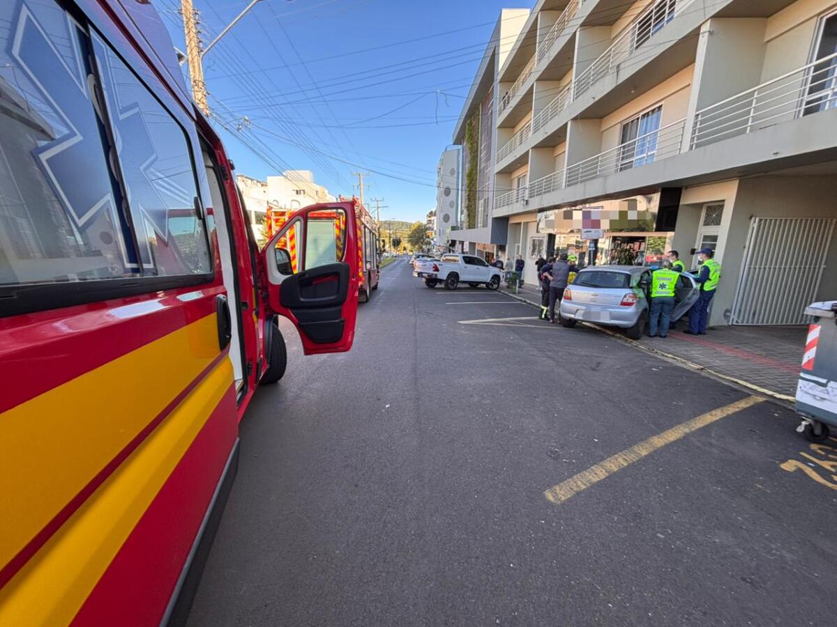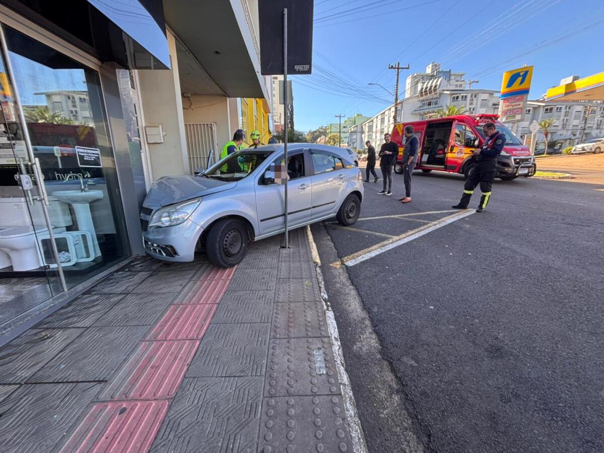 Um idoso perdeu o controle do carro e atingiu a estrutura de uma loja na manhã desta terça-feira, 28, por volta das 9h50, na Avenida Getúlio Vargas, no centro de São Miguel do Oeste.