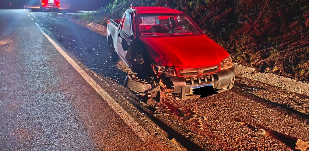 Quando as equipes do Corpo de Bombeiros chegaram ao local, encontraram o motorista consciente e orientado, com escoriações leves no lábio inferior. Ele relatou que trafegava pela rodovia quando seu veículo foi atingido por um caminhão, cujo condutor não permaneceu na cena.