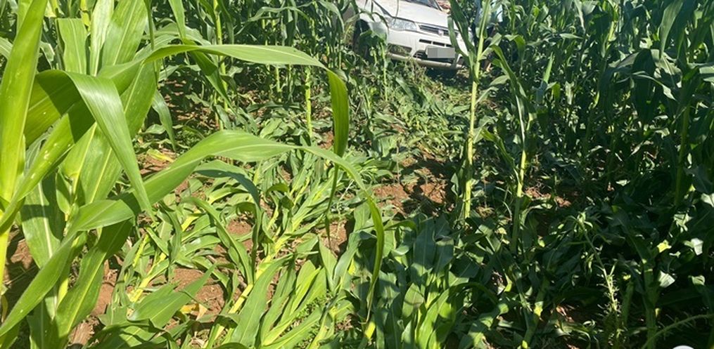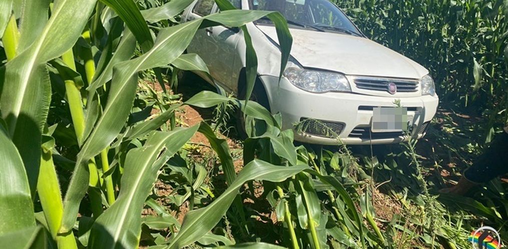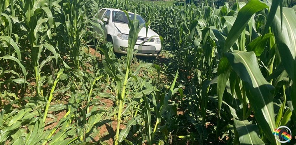 O condutor de um veículo Palio, placas de Itapiranga, perdeu o controle do veículo, saiu da pista e desceu uma ribanceira de aproximadamente 50 metros e parou no meio de um milharal. O veículo desceu de ré e não chegou a capotar.