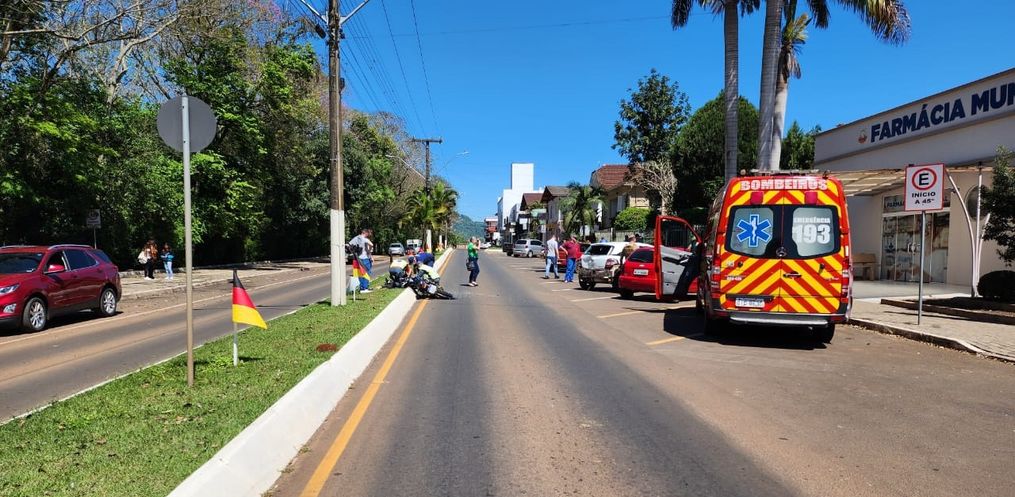 A ocorrência foi registrada por volta das 11h30 desta terça-feira, 17, na Avenida Uruguai, próximo ao Clube Imigrantes, no centro de Itapiranga. A colisão traseira envolveu uma motocicleta Honda Bros 160 e um Agile.