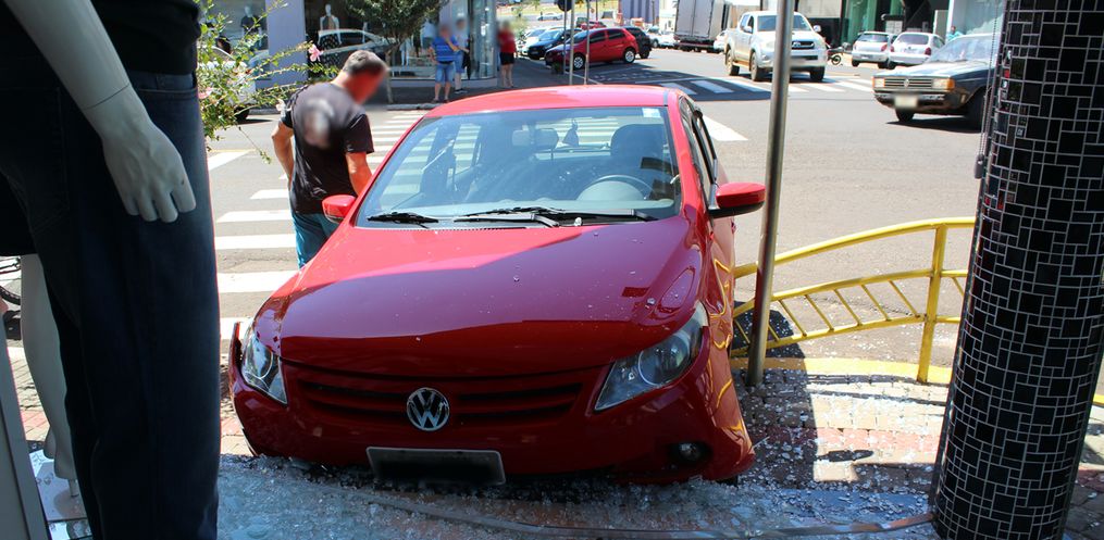 No local um homem de 70 anos, que conduzia um Gol, emplacado em Dionísio Cerqueira/SC, acabou sofrendo um mal súbito, vindo a perder o controle da direção e a colidir na fachada de uma loja.