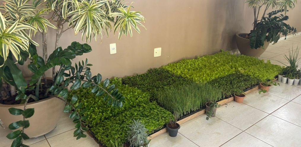 Os idosos aprendem sobre cultivo, manejo e colheita de hortaliças em hortas domiciliares.