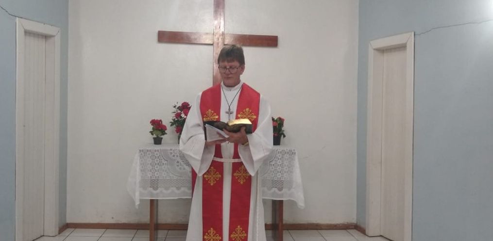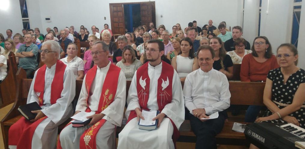 Pastor Conselheiro da Igreja Evangélica Luterana do Brasil Ismael Rediske, que dirige os trabalhos na Paróquia de São Miguel do Oeste, coordenou a instalação na noite deste domingo, 18, na igreja sede em Campo Erê.