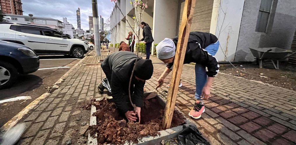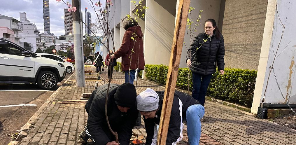 “A gente decidiu participar dessa mobilização e povoar as calçadas ao redor da Matriz. No entorno do Salão Paroquial foram plantadas cerejeiras japonesas, e o restante da quadra será preenchido com ipês”, explicou Bergamin à Rádio Peperi.