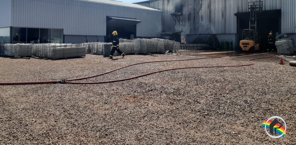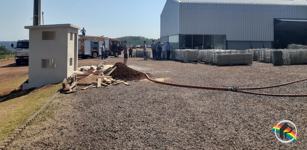 Um incêndio atingiu a empresa Construsui, que fica localizada na comunidade de Beato Roque, interior de São João do Oeste. No local são fabricados equipamentos para granjas de suínos.