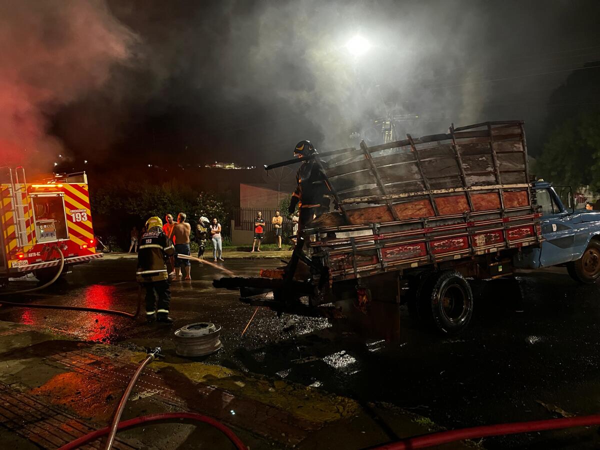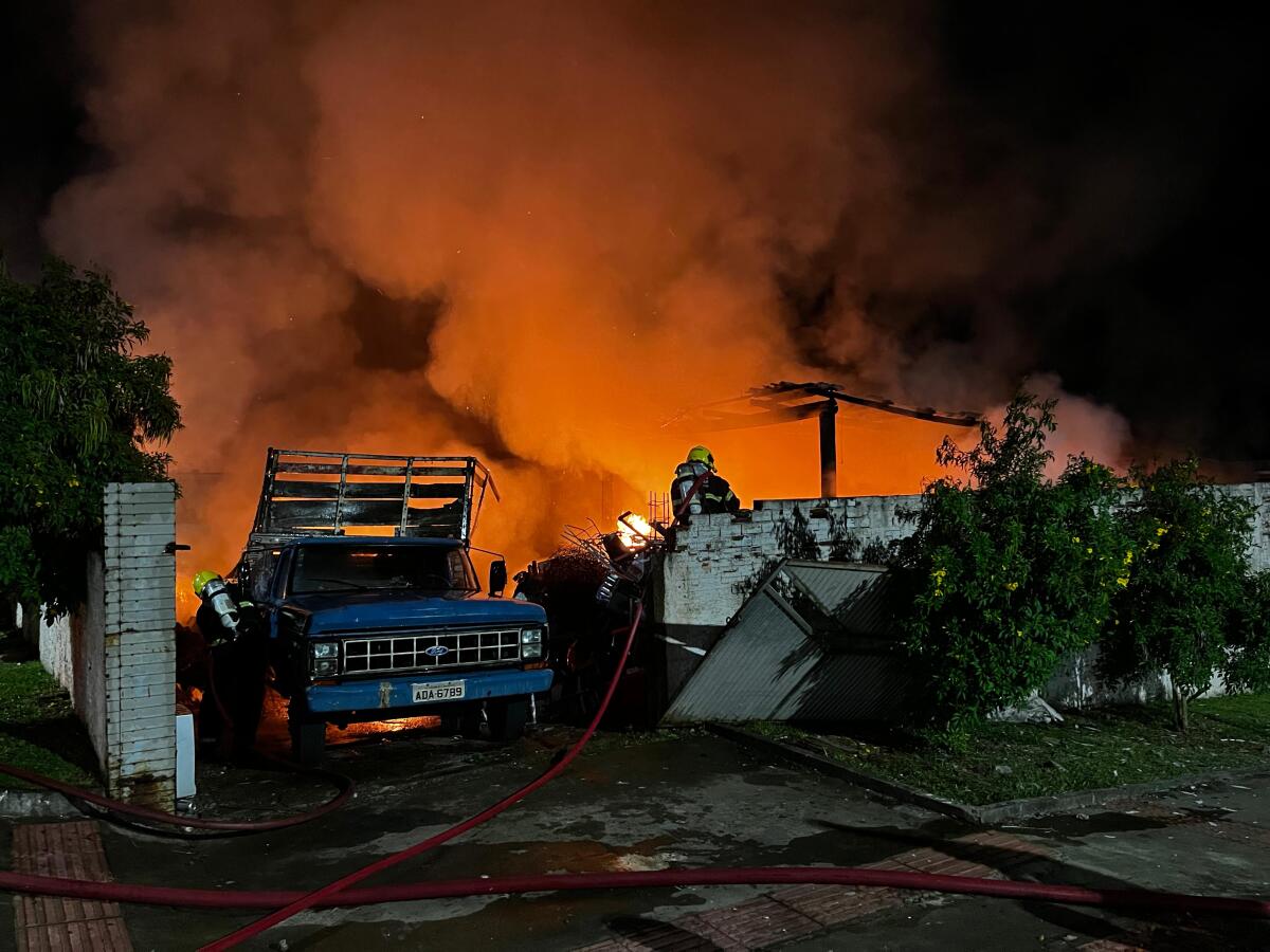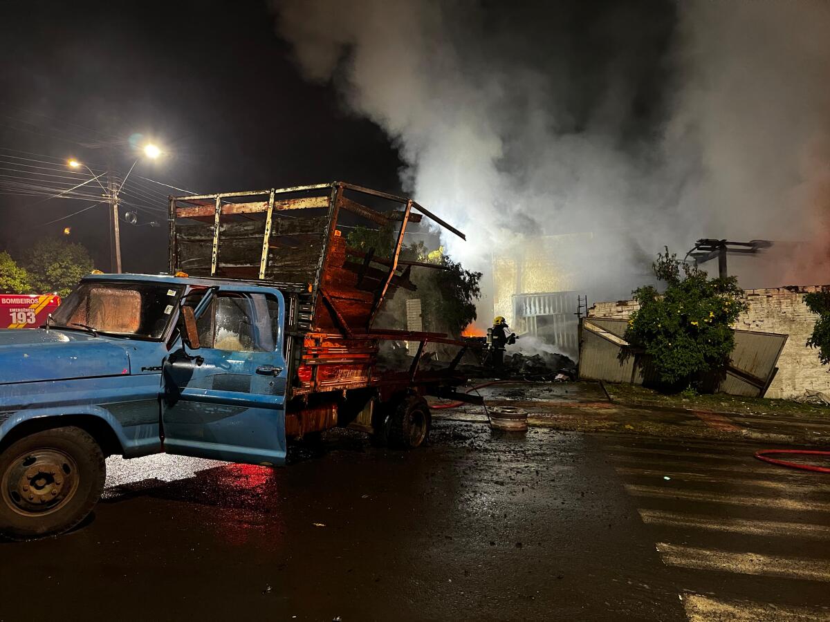 Durante o atendimento, uma caminhonete que estava estacionada dentro do terreno também foi atingida pelo fogo. Com o auxílio de populares, os bombeiros conseguiram retirar o veículo antes que ele fosse completamente consumido pelas chamas.