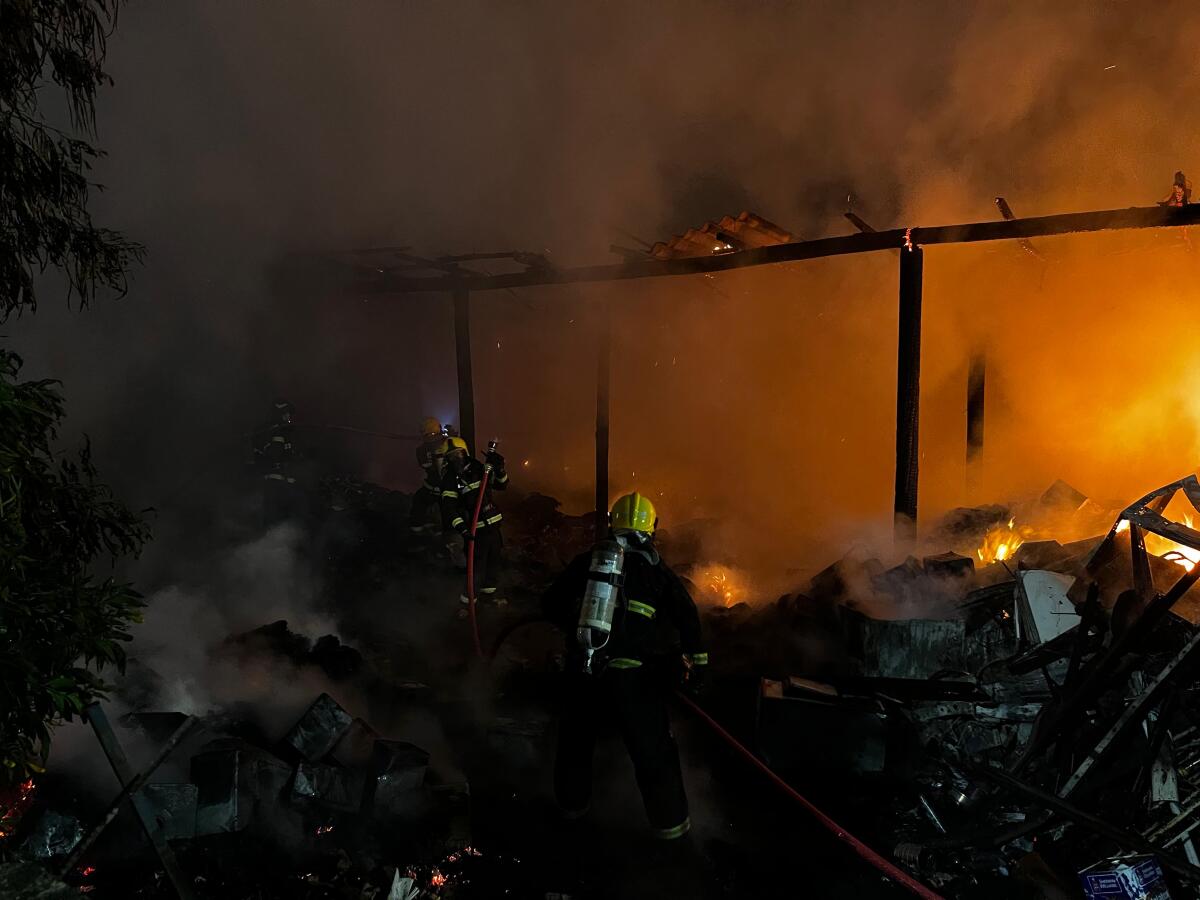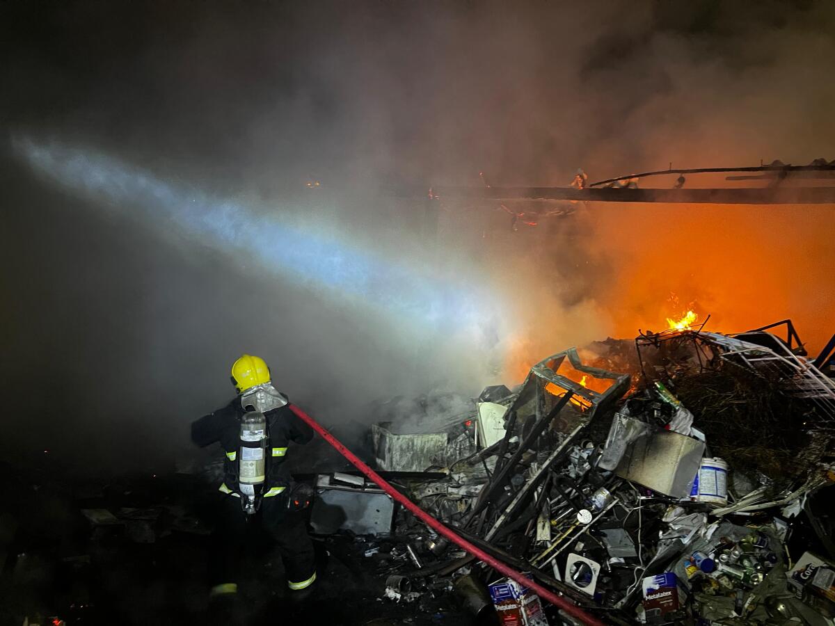 De acordo com as informações, o fogo atingiu principalmente uma área externa da empresa, onde estavam armazenados diversos tipos de materiais. As chamas se espalharam rapidamente devido à grande quantidade de material no local.