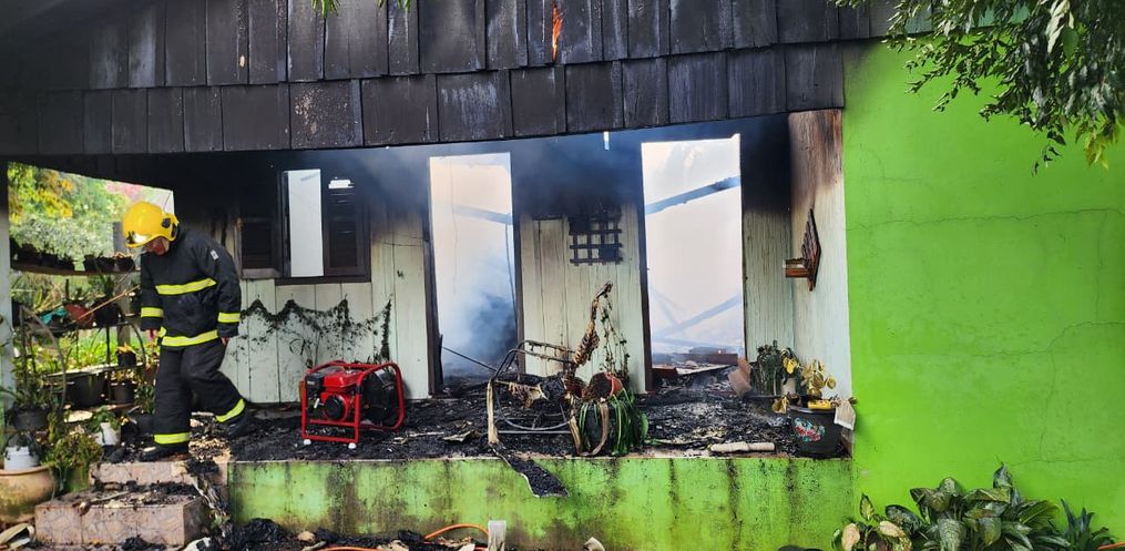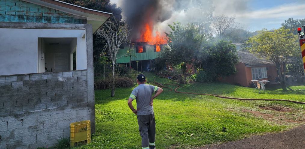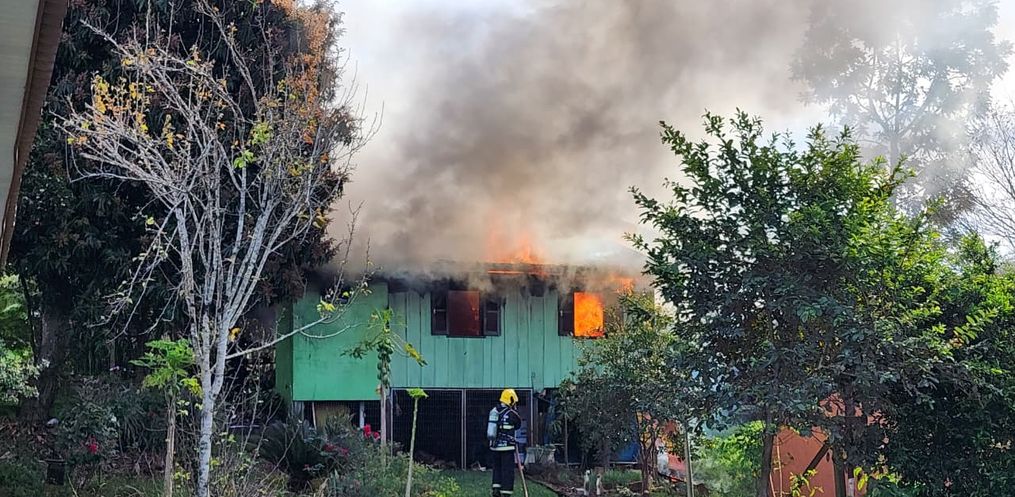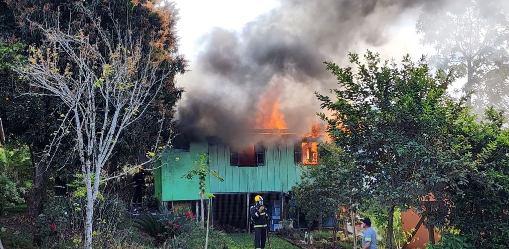 Um incêndio atingiu uma residência mista, com grande parte em madeira na tarde desta quarta-feira, 11, por volta das 15h40, na Rua Boa Esperança, no Bairro Jardim Bela Vista, em Itapiranga.