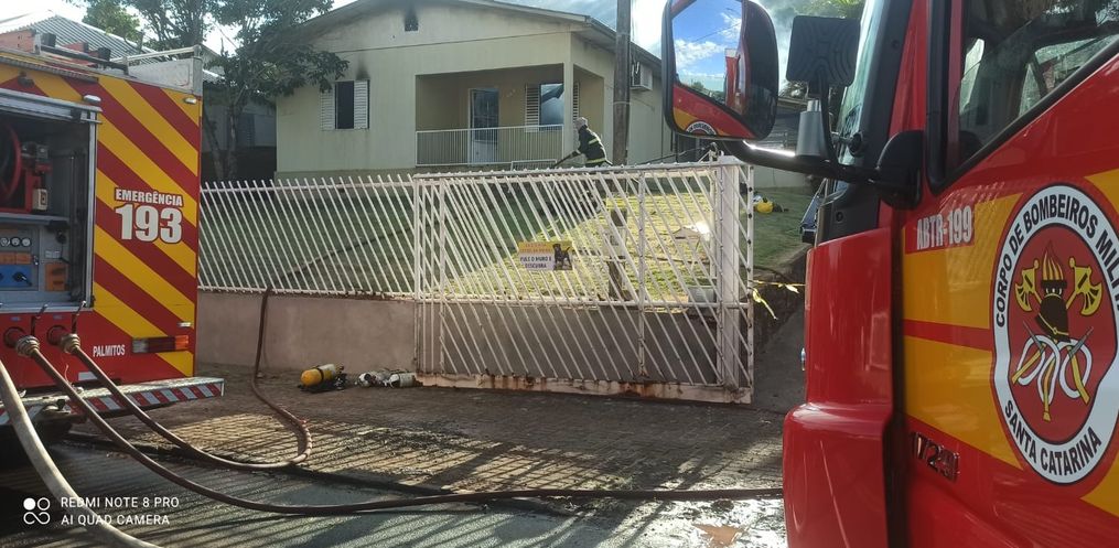 Um incêndio atingiu uma residência por volta das 07h50 desse domingo, 23, na Rua Dom Pedro II, o centro de Palmitos.
