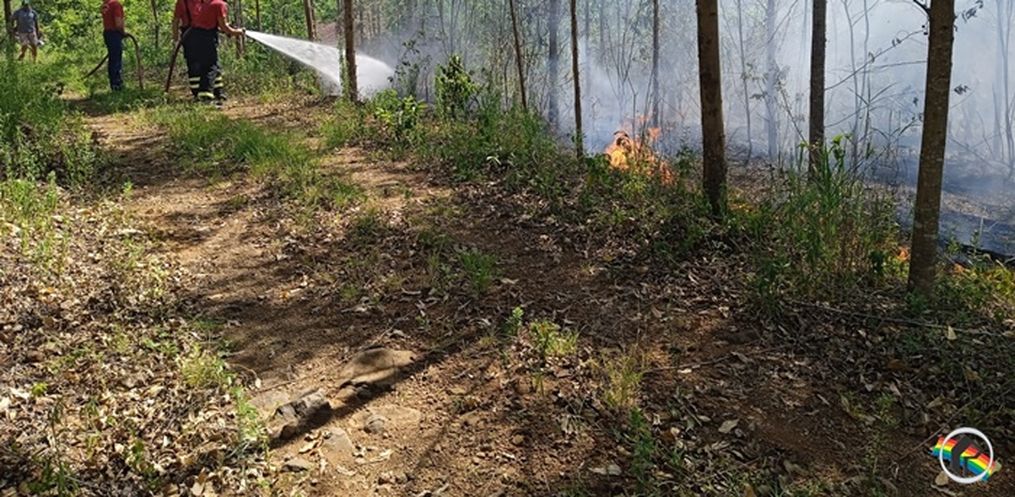 A guarnição dos bombeiros de Itapiranga foi acionada para combater incêndio em área de reflorestamento de eucalipto. Aproximadamente dois hectares de vegetação foram consumidos pelo fogo.