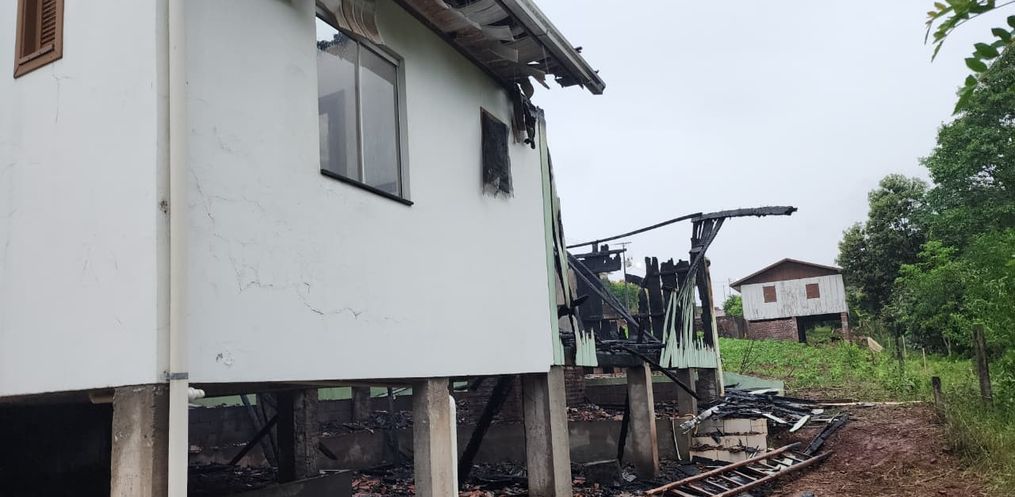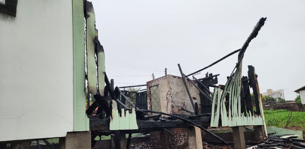 O incêndio foi registrado em uma casa de madeira, no loteamento Ruchel, na localidade de Santa Fé Alta.