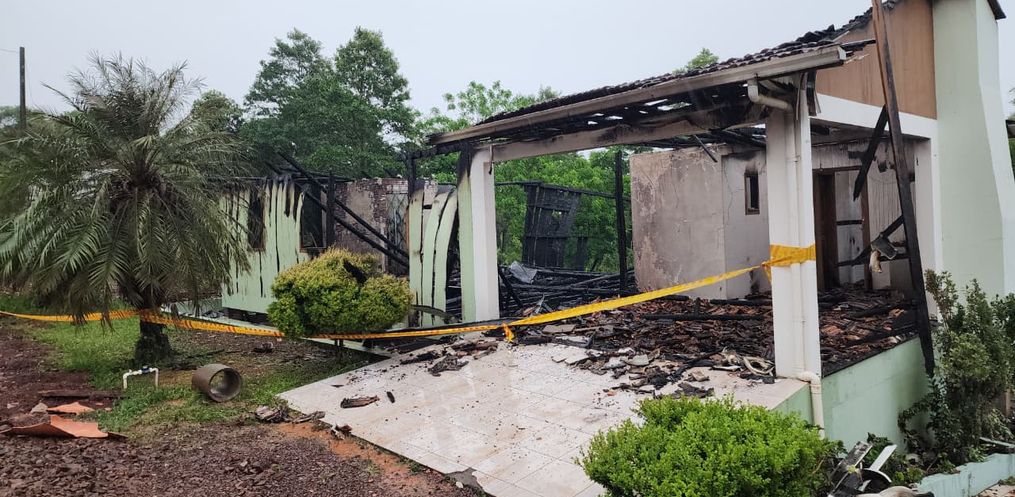Os bombeiros encontraram a residência já com o teto desabado e o fogo consumindo por completo a estrutura de 110 metros quadrados. O proprietário reside na cidade de Itapiranga e no momento do incêndio ninguém estava na casa.