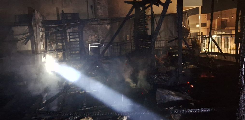 Um incêndio de grandes proporções atingiu uma edificação de dois pavimentos nesta quinta-feira, 19, por volta das 1h15, na Avenida Brasil, no centro de Palmitos. O imóvel abrigava um comércio no térreo e uma danceteria no andar superior.