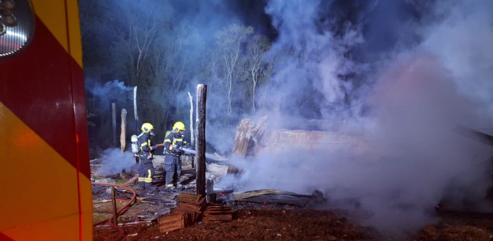 Um incêndio consumiu um galpão por volta das 23h20 dessa terça-feira, 17, na Linha Vista Alta, interior de Princesa.