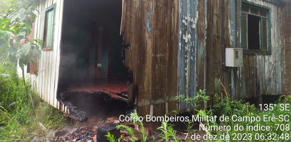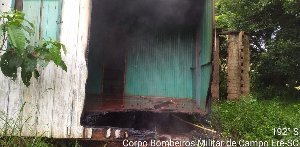 O Corpo de Bombeiros de Campo Erê foi acionado por volta das 5h50, desta quinta-feira, 07, para atender a ocorrência de incêndio em uma residência na Linha Três Voltas, no interior de São Lourenço do Oeste.