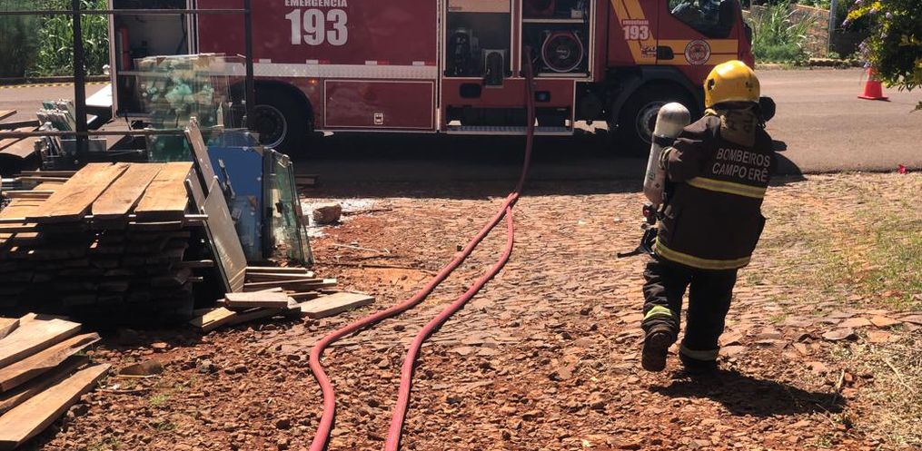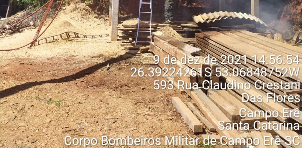 Por volta das 14h30 desta quinta-feira, 09, a guarnição do Corpo de Bombeiros de Campo Erê foi acionada para apagar a um incêndio em depósito de maravalha, na Rua Damo no Bairro Sander, em Campo Erê/SC.