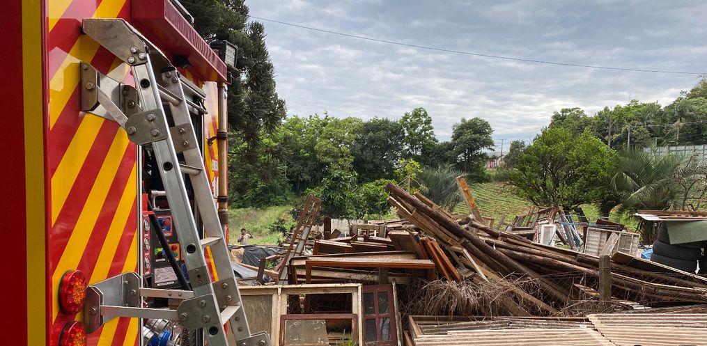 Na manhã desta terça-feira, 22, por volta das 7h, um incêndio atingiu um depósito de pneus no Bairro Progresso, em São Miguel do Oeste.
