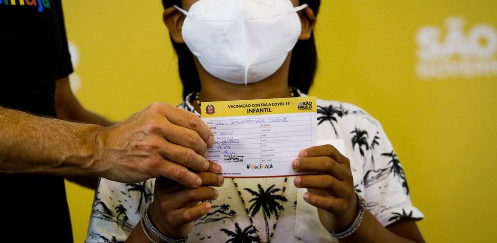 O indígena Davi Seremramiwe Xavante, de 8 anos, foi a primeira criança a ser vacinada contra a Covid-19 no país. A imunização ocorreu por volta das 12h desta sexta-feira, 14, em um evento simbólico organizado pelo governo de São Paulo para inaugurar a vacinação de crianças de 5 a 11 anos.