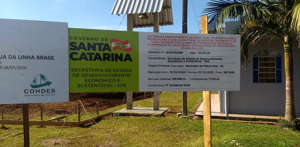 Sabendo da dificuldade de armazenar de água nesta região em Palma Sola, deu-se início a instalação da estação após a licitação. Foi executada a terra plenagem, aterro, estrutura onde será implantada a caixa que irá fornecer a distribuição da água, estrutura onde será colocada a casa de química e um laboratório.