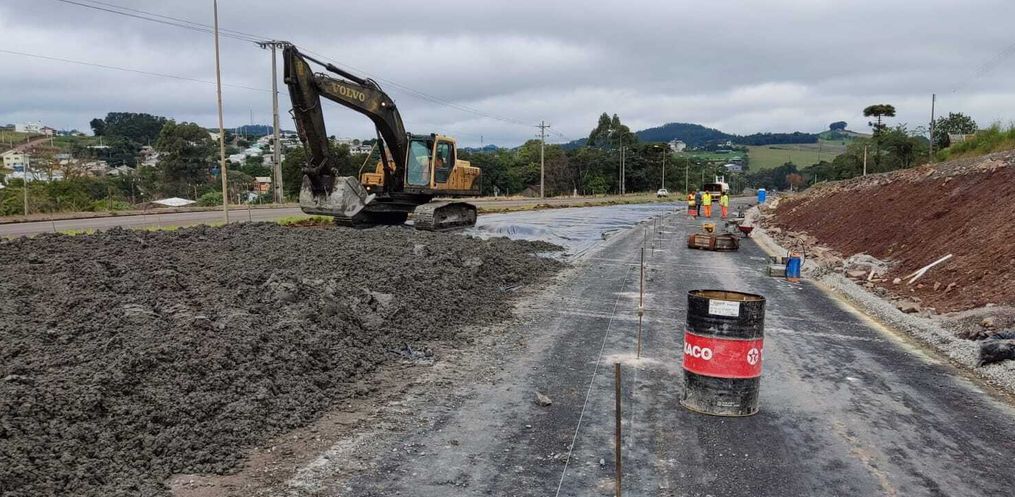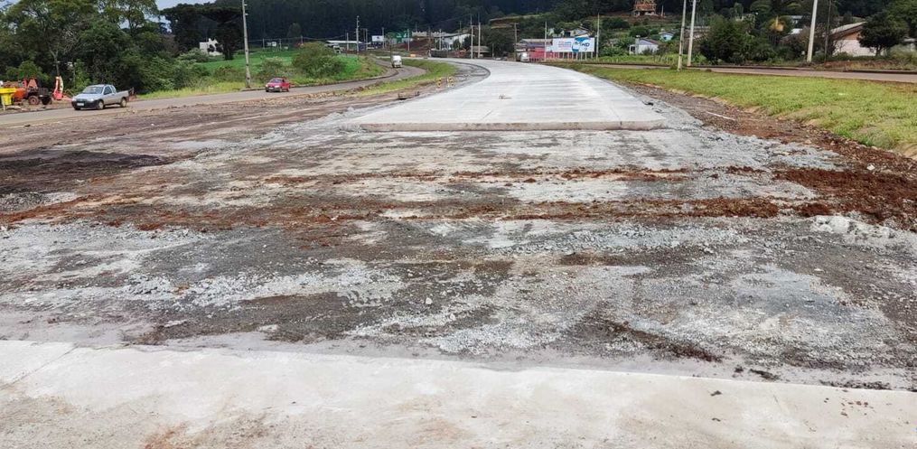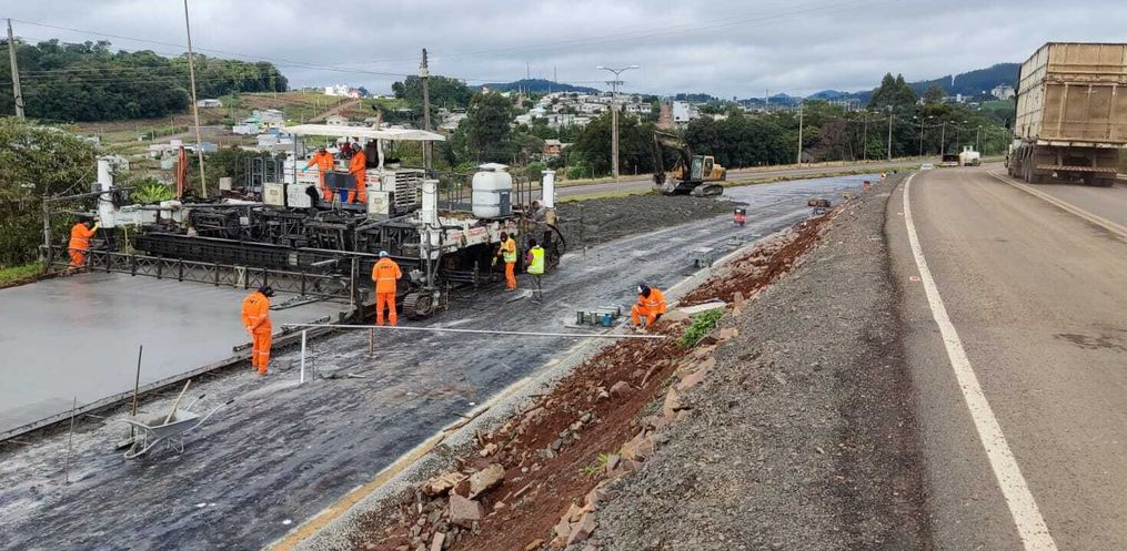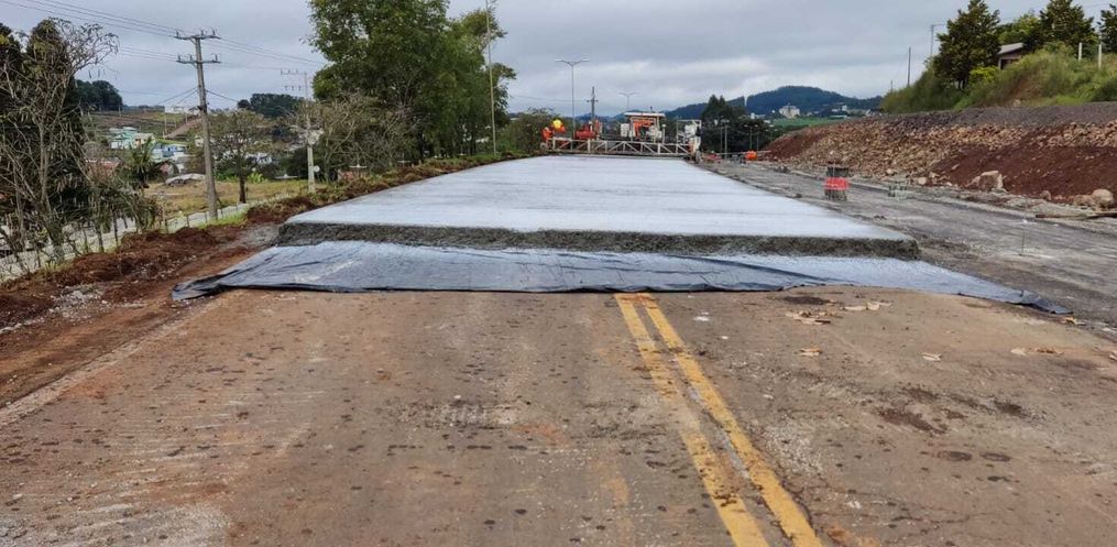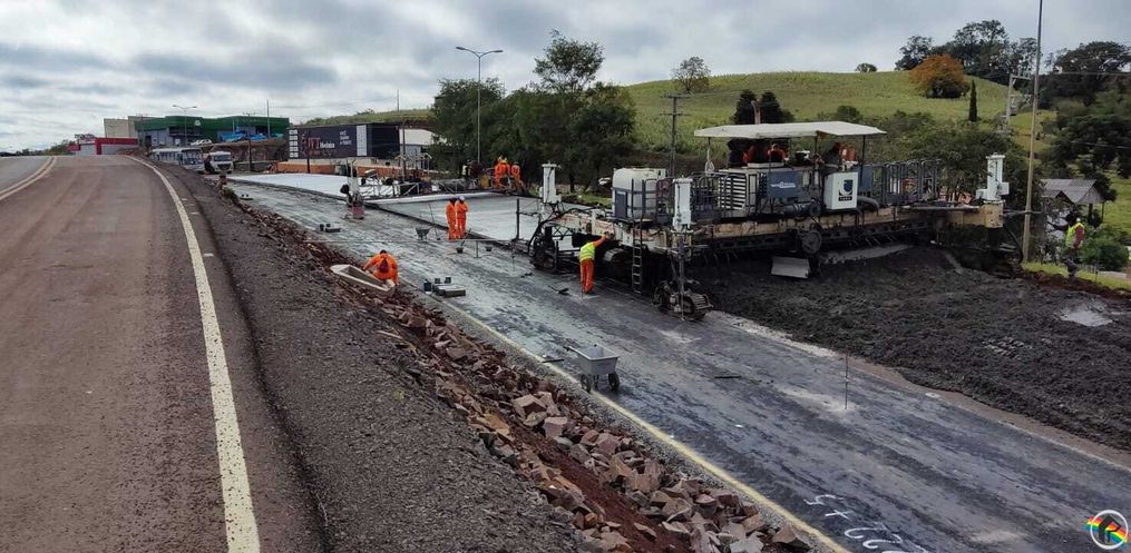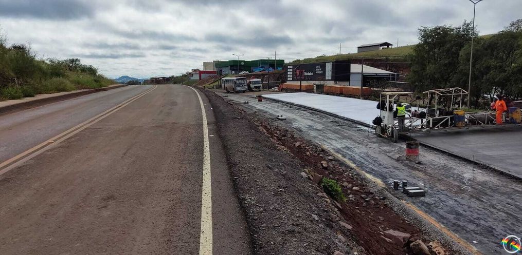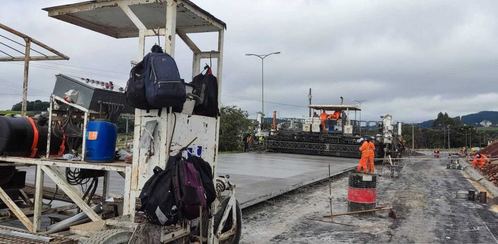 A aplicação começou na altura da entrada para o Loteamento São Domingos. A ideia agora é ligar o pavimento com o elevado no sentido norte/sul. Neste trecho, a rodovia contará com a terceira faixa de pavimento rígido para aumentar a fluidez do trânsito. Além da aplicação do concreto, parte da equipe efetua serviços de adequação da pista próximo ao acesso do elevado, também no lado norte.