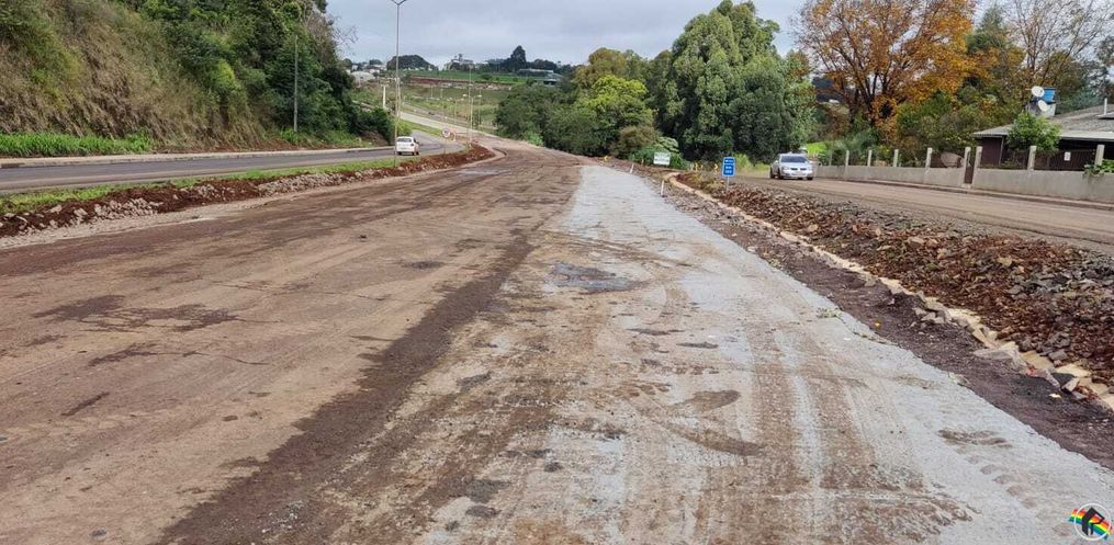 Foi iniciada nesta sexta-feira, 03, a pavimentação do lado norte do elevado da BR-163, Linha São Domingos, em São José do Cedro. Ao todo já foram pavimentados cerca de quatro quilômetros.