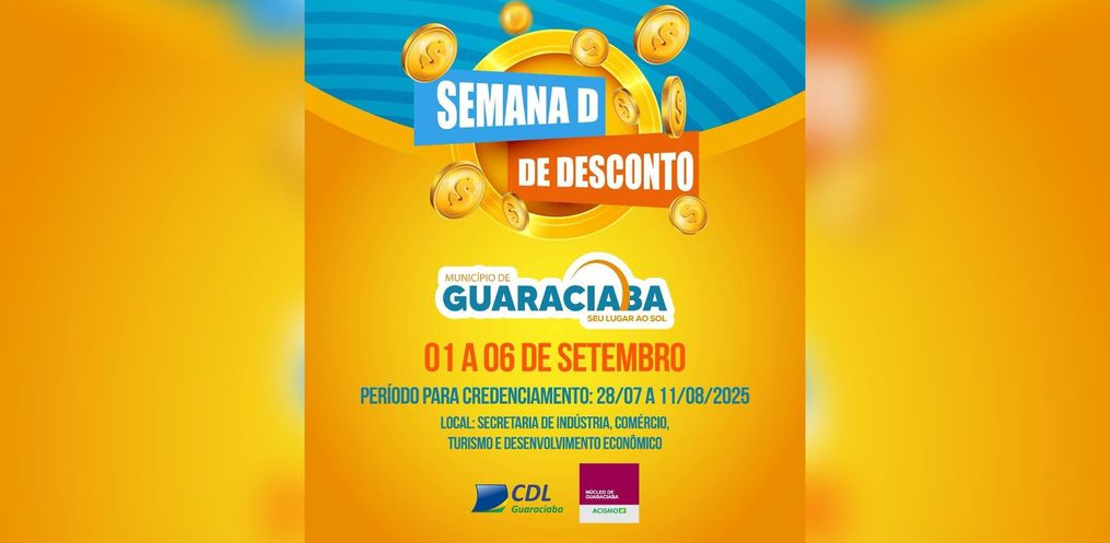 Termina nesta segunda-feira, 11, o prazo para empresas interessadas em participar da Semana D de Descontos, ação que promete movimentar o comércio de Guaraciaba na primeira semana de setembro.