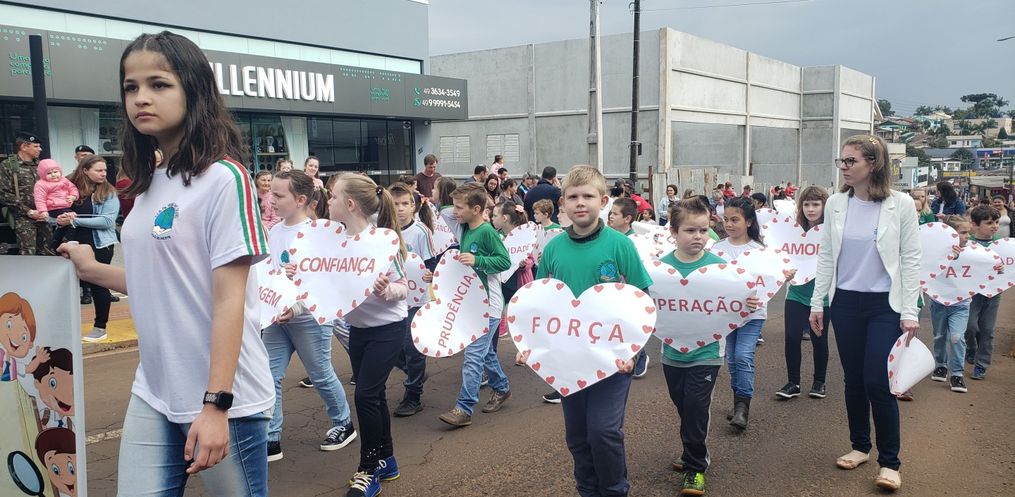 O Desfile Cívico do Dia da Pátria movimentou a Avenida Gustavo Fetter em Iporã do Oeste no feriado desta quarta-feira, 07. Conforme a secretária de educação, Neusa Hahn Beilke, foram realizadas algumas reuniões prévias com as entidades envolvidas para definir a posição de cada pelotão no desfile.