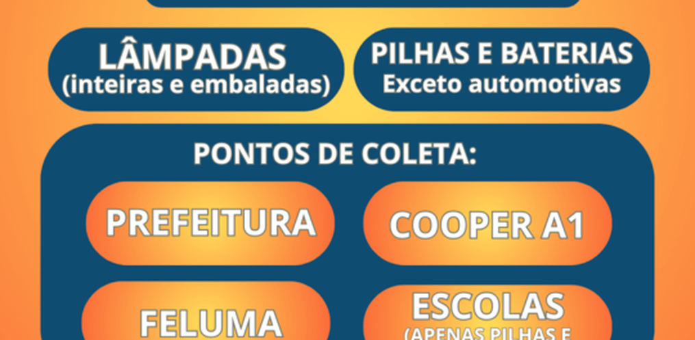 Conforme o Secretário de Planejamento e Gestão Wilson Mallmann, na oportunidade estão sendo recolhidas lâmpadas, pilhas e baterias, exceto automotivas. Os mesmos estão sendo recolhidos de forma gratuita, e poderão ser deixados até essa quinta feira,02, na Prefeitura, Cooper A1, e Feluma. As escolas do município também possuem disponibilizaram coletores para a recolha do material.