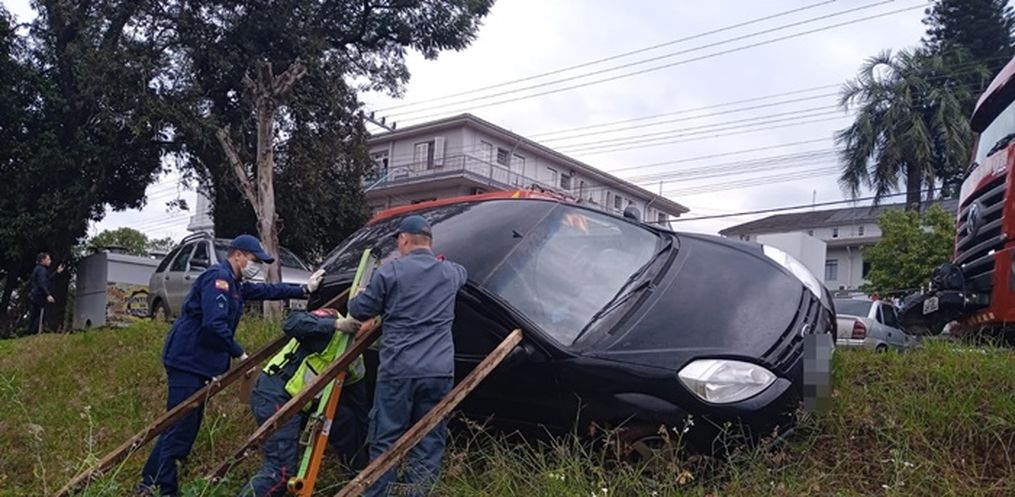 O veículo foi removido por um guincho. Os bombeiros também auxiliaram na remoção.