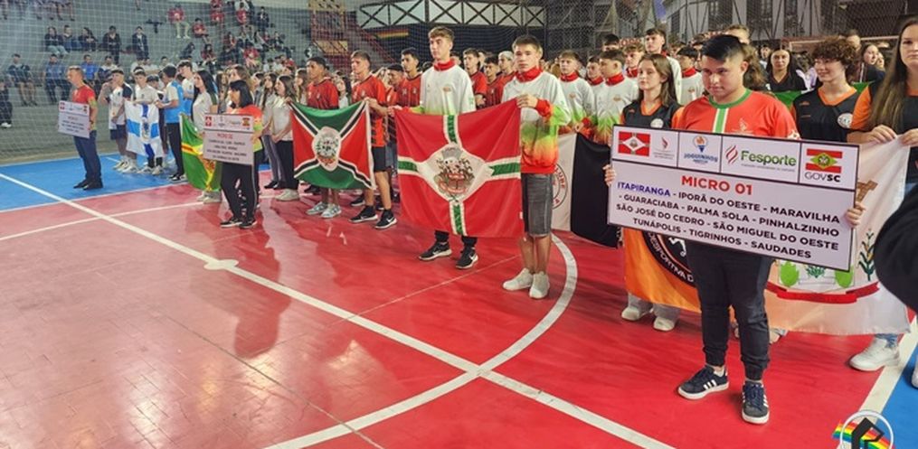 A Delegação de Iporã não esteve presente em virtude do falecimento do prefeito Adélio Marx. Foi respeitado um minuto de silêncio. São 10 modalidades e 1400 alunos. O Cerimonial de Abertura também foi marcado por homenagem ao ex-diretor de esportes de Itapiranga Ênio Pauli, que faleceu em 2023, porém ele esteve presente quando foi assinado o termo para Itapiranga sediar a fase Regional dos Joguinhos.