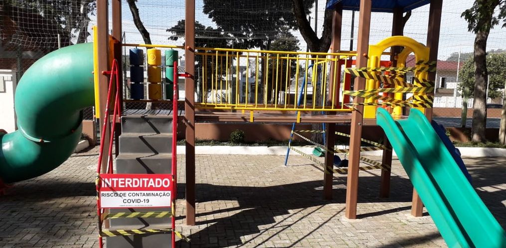 Também foram interditados os parquinhos com playgrounds, quadras e campos de práticas esportivas nas praças públicas. Benachio salienta que a interdição é por tempo indeterminado.