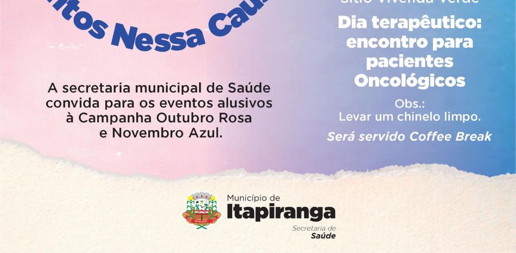 Conforme a Enfermeira de Itapiranga, Jacqueline Hermes, durante os meses de outubro e novembro, serão realizados três eventos com a comunidade em geral para enaltecer a importância da conscientização e do diagnóstico precoce do câncer de mama, de útero e do câncer de próstata. As atividades visam mobilizar a população acerca da prevenção.