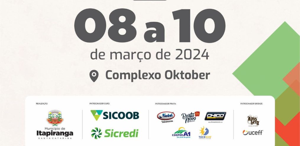 A 11ª Exposição Feira Agropecuária, Comercial e Industrial de Itapiranga terá como slogan “História, Inovação & Negócio$”. A exposição feira é um evento alusivo ao aniversário de 70 anos de Itapiranga, destacando o potencial que o município possui nos negócios, shows, gastronomia, cultura e turismo.