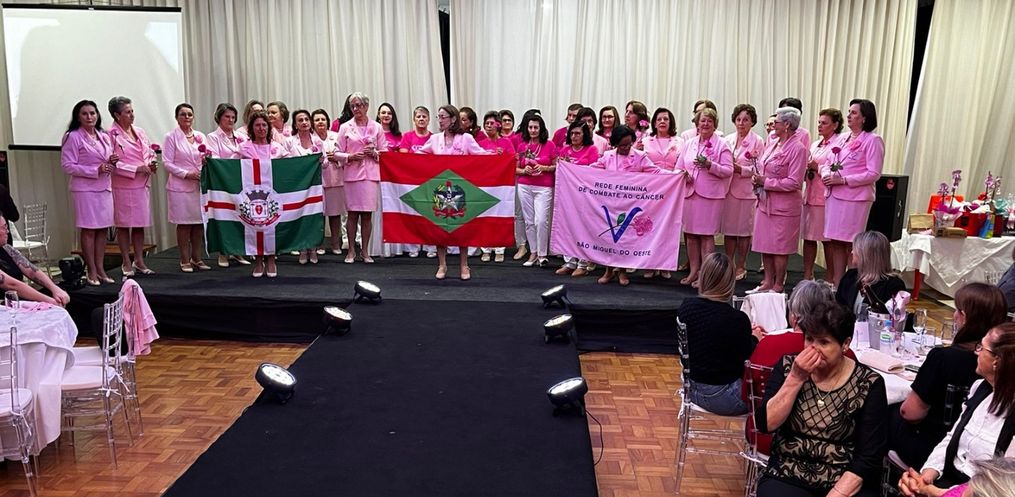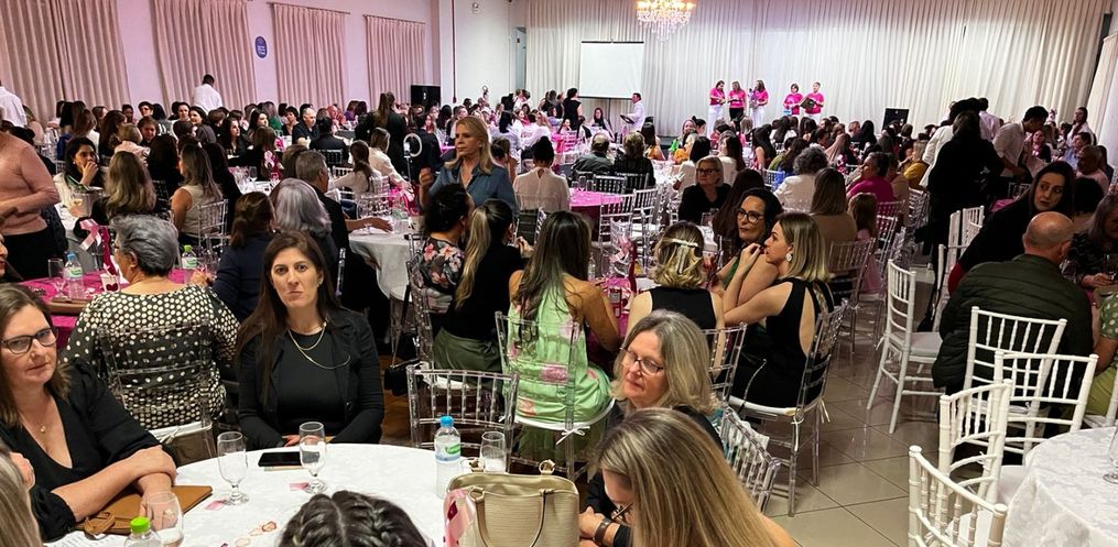 O jantar que abriu oficialmente as atividades da Campanha Outubro Rosa em São Miguel do Oeste reuniu cerca de 450 pessoas na noite dessa quinta-feira, 3, no Clube Comercial.