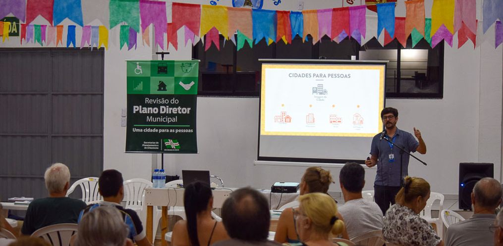 De acordo com o secretário de Urbanismo, Jeferson Dias, os encontros estarão sendo feitos conforme o zoneamento do município, e é importante que a população fique atenta à data e local da reunião em sua região e participe, pois o Plano Diretor Municipal norteia o desenvolvimento ordenado da cidade e impactam no dia a dia de todos.