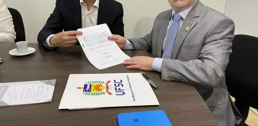 O reitor da UFSC Irineu Manoel de Souza relembrou os desafios enfrentados pela universidade em termos de recursos, ressaltando a importância da parceria para continuar desenvolvendo pesquisas de qualidade.