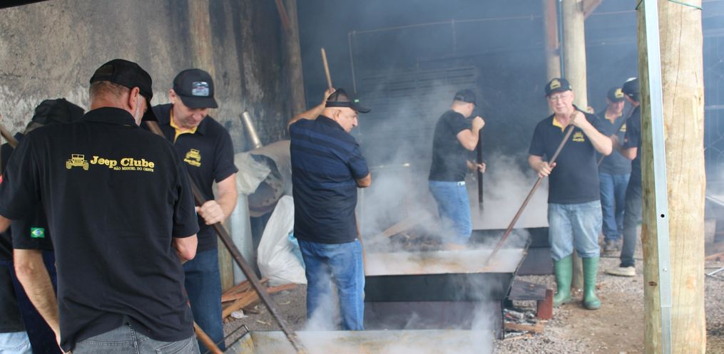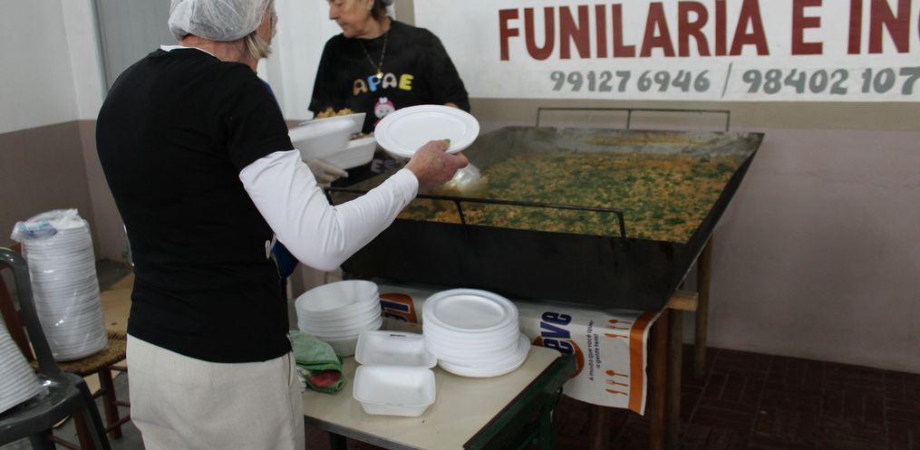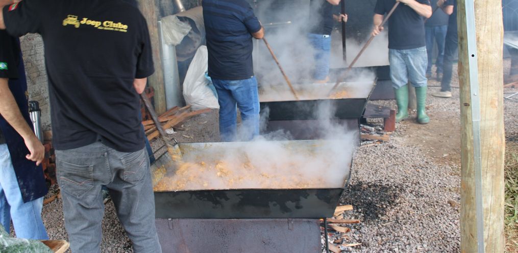 De acordo com ele, a Apae é responsável por providenciar os ingredientes e a quantidade de ingressos vendidos. O Jeep Clube, então, se mobiliza prepara o risoto, leva o tradicional tacho até o salão e serve os participantes.