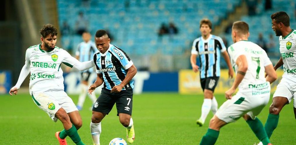 O pouco público que compareceu à Arena chegou disposto a apoiar à equipe gremista. Ainda no aquecimento, os atletas foram alvos de aplausos. Quando a bola rolou, os primeiros minutos também foram de apoio dos torcedores. No gramado, porém, a primeira jogada da partida já mostrou que o Grêmio não era um time mais organizado apesar das cinco mudanças em relação a domingo. O Cuiabá ameaçou a um minuto em chute de Max após bola perdida por Campaz ainda no meio-campo.