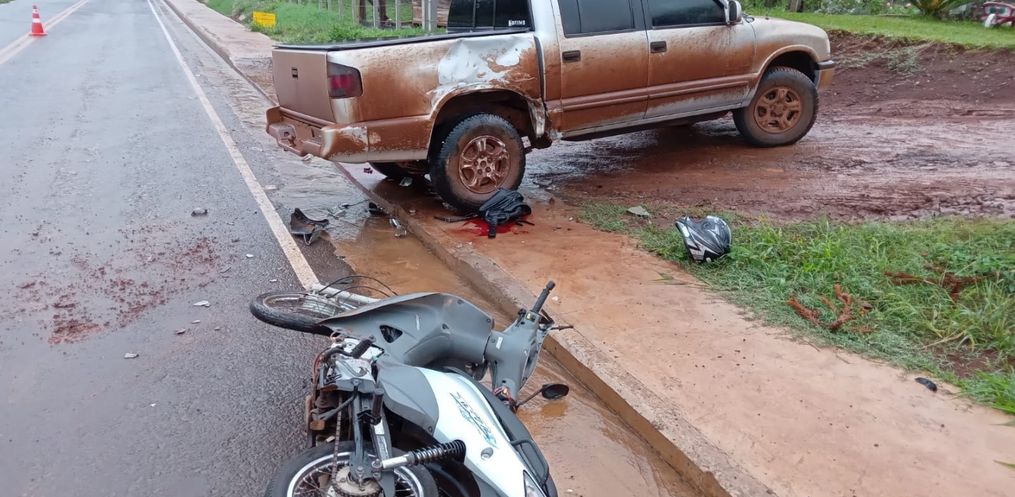 Uma mulher morreu em um acidente entre uma motocicleta e uma camionete no trecho de Via Periférica na altura da Linha São Domingos, BR-163 em São José do Cedro. O acidente aconteceu por volta das 17h30 desta terça-feira, 12.