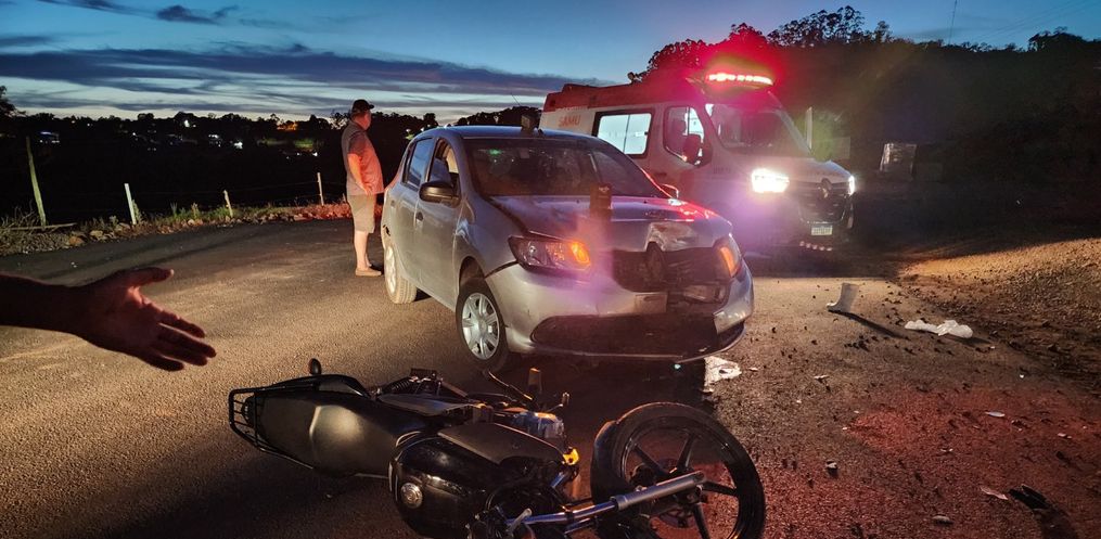 O carro, um Sandero utilizado para táxi, seguia no sentido contrário e tentou realizar uma conversão à esquerda para entrar no pátio do posto. Já a moto, uma Factor com placas de São José, seguia no sentido Tunápolis a Itapiranga.