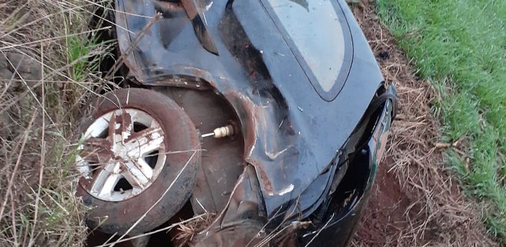 No local ocorreu uma saída de pista e capotamento envolvendo um Celta.